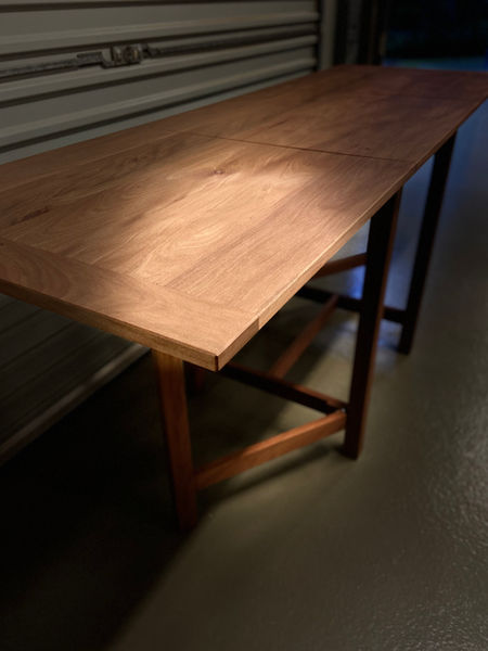 This table was made for an apartment where space was at a premium. Designed to sit up to 6 people when fully extended or comfortable enough for 2 when folded, it was the perfect choice.