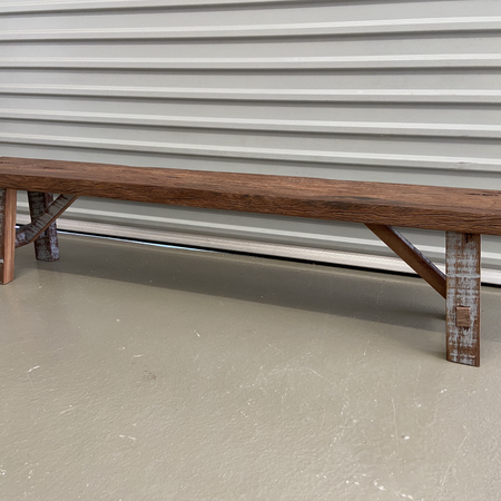 Made from an old hardwood retaining wall sleeper and some pergola beams, the beauty in the exposed timber is second to none. And while a lot of it's natural look has been revealed this piece has been carefully crafted to ensure some of it's history remains.