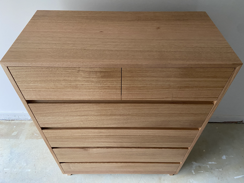 Our client commissioned a modern bedroom suite to compliment their newly renovated room. The brief was focused on having a nice straight grain, warm honey tones and also being a beautiful Australian hardwood. Tasmanian Oak was the obvious choice and presented extremely well when finished with Osmo PolyX Satin.